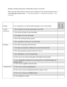 Marriage Checkup Questionnaire: Relationship Domains Assessment